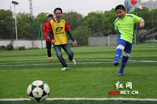 红网长沙4月7日讯(通讯员 高兴 记者 黎鑫)昨日上午,尽管天公不作美,下起了蒙蒙细雨,但在长沙益启足球公园却上演了一场特殊的足球比赛。8岁的小湘湘在湖南宏碁足球俱乐部球员的陪伴下满场飞奔,第一次穿上球衣球鞋,第一次踏上绿茵球场踢球……以前的他从来不敢想象。