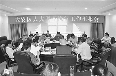 本报讯近日,四川省自贡市大安区人大常委会主任邓国平率部分人大常委会委员、人大代表到大安法院调究执行工作。