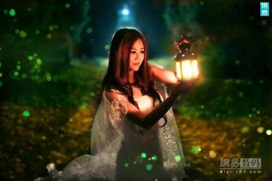 拍摄这张照片重分体现了高感降噪功能比较强大的5D3的好处。因为灯笼里面的烛光很弱,而且周围的光线也很暗,模特上方的蓝色光影就是很远处的一盏路灯,面部的光源就是面前的烛光。所以这张照片基本用的就是自然光。由于光线非常暗而过长的曝光会让人物虚也会出现鬼影。所以这张照片我用了ISO 8000.这样 把曝光时间控制在1/40S 人物就不会虚了。照片后期我加了一些绿色光点让照片更有童话的感觉。