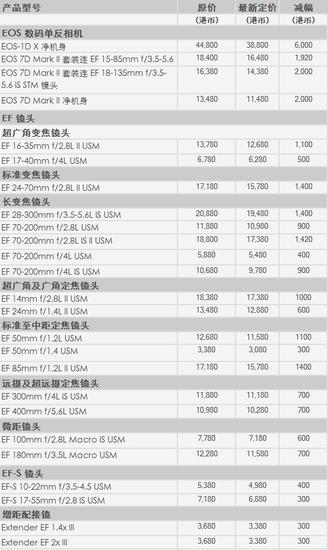以下是调价产品和最新定价: (1港币约合0.82人民币)