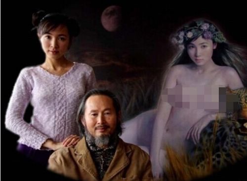 ↑图:老父画家和他的裸模女儿-《东方神女山鬼系列
