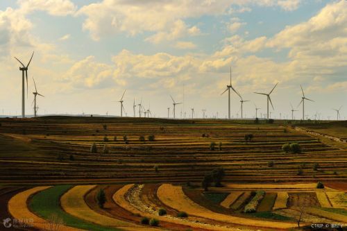 顺着草沿天路一路向前,无数美景从身边掠过。除了苍茫无边的草原和孤立高耸的白色风车,最吸引人的要数沿途独一无二的梯田风光。梯田并不是北方常见的景观,但如果你正驾车行驶在草沿天路上,两旁的梯田风光,定会给你摄人心魄的震撼。尤其是秋季来临,纵横交错的青黄色块,与缓慢旋转的白色风车相伴,将会是你自驾沿途最美的风光之一。