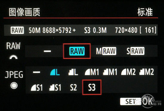 除了这六种基本选项外,有些相机还提供了更精细的小图输出模式,即在LJpeg、MJpeg、SJpeg这三个选项里,再细致地划分为更小的选项。其中SJpeg的最小图达到720*480(0.3M)的网络传输大小,这也是适应现在网络传输和社交分享的需要。这样大小的图片在即时通讯或即时传输的场合是非常好用的,因为它不需处理,大大减少了我们压缩及传输照片的时间。不过需要注意的是,拍完后记得要调回Raw+Jpeg格式,不然下次拍摄只有最小格式的Jpeg格式的话就要跪哭了。