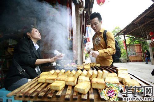 在铜梁安居古城,保存完好的传统民间技艺受到网媒记者们追捧。爆米花、泥塑铜人、手工粽子、柴火补锅等引得网媒记者一行频频驻足,仔细询问其由来和发展经过,并通过新媒体手段加以报道。