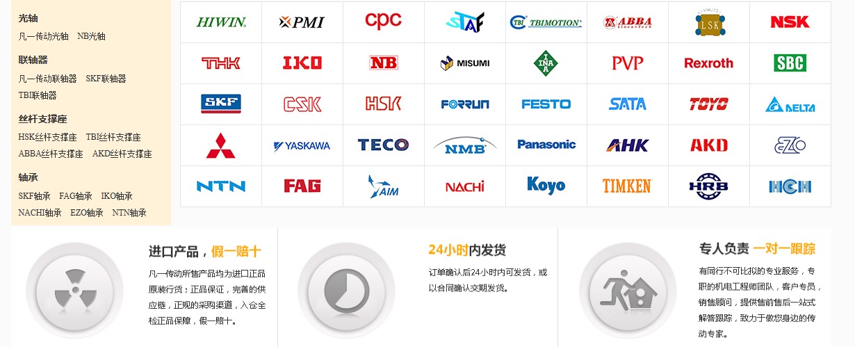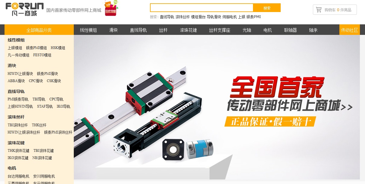 笔者了解到,凡一商城拥有多达十几年的在传动零部件业的成功运营经验,新上线的凡一商城在完美继承了这种成功基因的基础上,更是崇尚“质真价优、快速便捷”的理念,坚持只销售进口产品,为众多消费者提供高品质的购买体验。笔者在凡一商城的首页看到,平台产品涵盖涵盖导轨、滑块、精密模组、直线轴承、滚珠丝杆、电缸滑台、伺服电机、直线光轴、联轴器、滚珠花键等十多个大类,据网站负责人称,目前网站已上线了30余个世界知名品牌,产品型号多达30万余个。