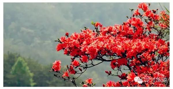一大片、一小簇的红艳艳的花,镶嵌在山野上,散布在路旁、深谷边,火红的杜鹃花掩没了一个个山岗。