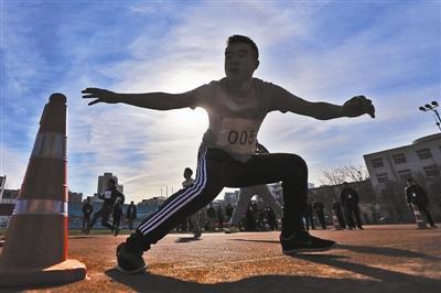 通过笔试的考生昨天在大兴区体育局运动场参加体能测试供图/《法制晚报》记者 柴程