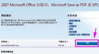 ?步骤2、点击可链接文字“用于2007Microsoft Office 程序的 Microsoft 另存为 PDF 或 XPS 加载项”。