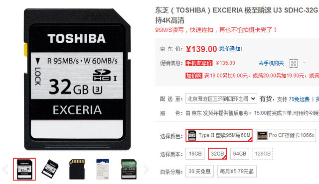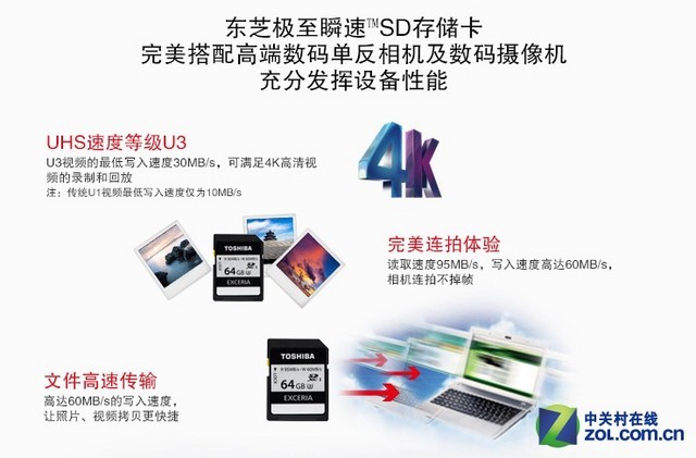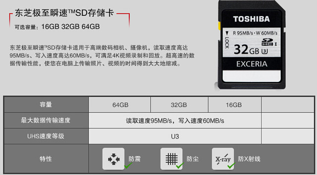 东芝SDXC UHS-1 U3存储卡(图片来自京东商城)