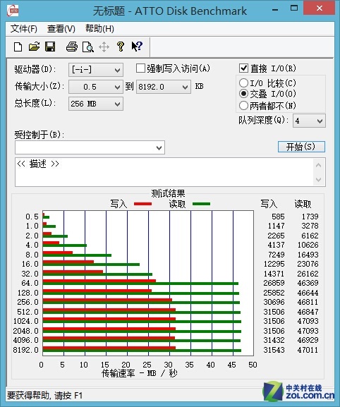 在ATTO Disk Benchmark测试中,可以看出,三星EVO SD存储卡读取速度达到47MB/s,最大写入速度达到31.5MB/s,超快速度绝对可以轻松应对日常照片拍摄与视频录制。从测试曲线来看,速度相当稳定,并且接近标称值。