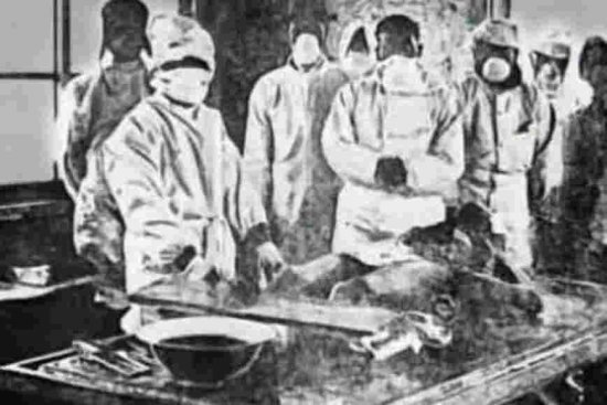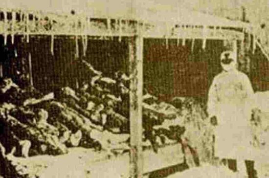 731部队残忍地对各国抗日志士和中国平民的健康人体用鼠疫、伤寒、霍乱、炭疽等细菌和毒气进行活人实验。