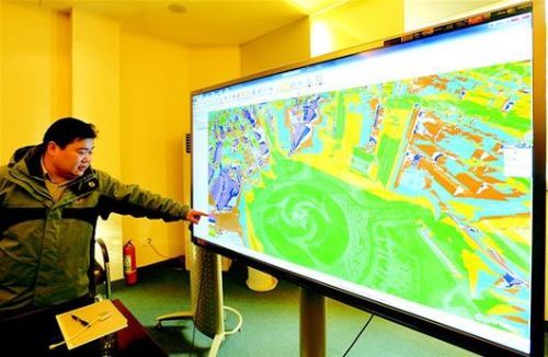 图为:武汉华正空间软件技术有限公司工作人员演示“桌面城市”。