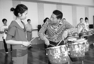 浙江舟山普陀区“艺术大课堂”的舟山锣鼓公益培训效果好 柯 军 摄