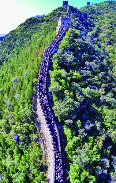 今天上午11点居庸关长城上的人流已经接起了长龙(航拍图)