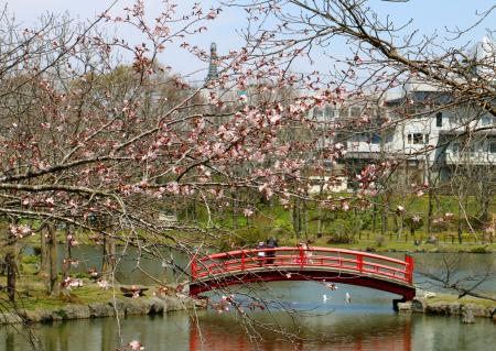 ↑图:日本国花樱花今年受冻观赏期延后 中国园林商